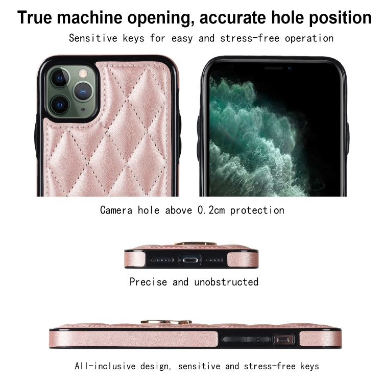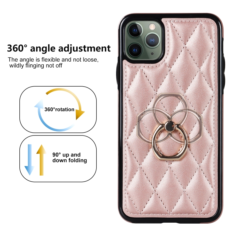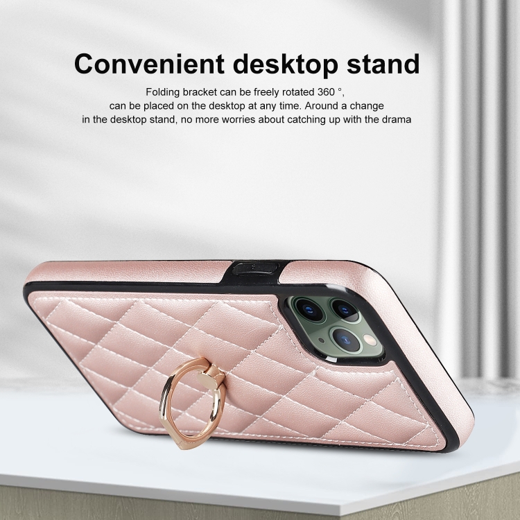 Funda para Teléfono iPhone 11 Pro Max Rhombic PU Cuero con Soporte para Anillo (Oro Rosa)