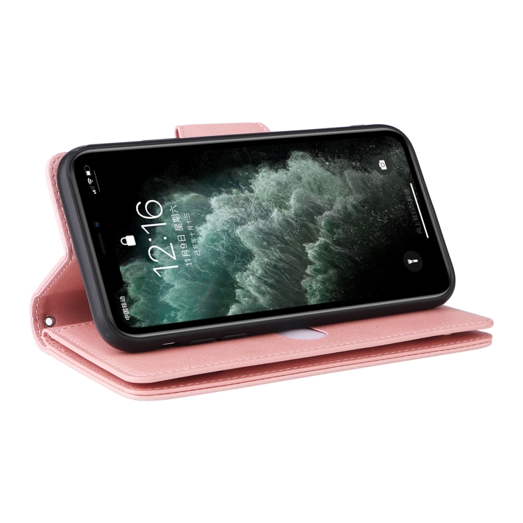 Funda para iPhone 11 Pro Max Rivet Buckle 9 Cards Cuero Tres Pliegues (Oro Rosa)