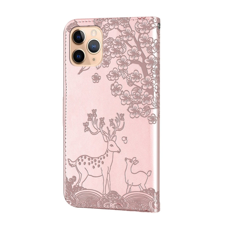 Funda Flip PU Cuero iPhone 11 Pro Max Sika Deer Relieve Soporte Ranura Tarjeta Billetera (Oro Rosa)