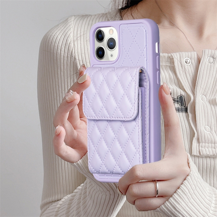 Funda para iPhone 11 Pro Max Vertical Wallet Rhombic Leather Phone Case (Púrpura)