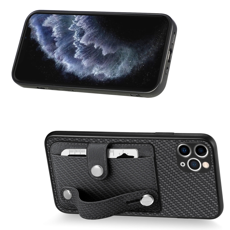 Funda para iPhone 11 Pro Max Wristband Kickstand Card Wallet Back Cover Phone Case con Herramienta Knife (Black)