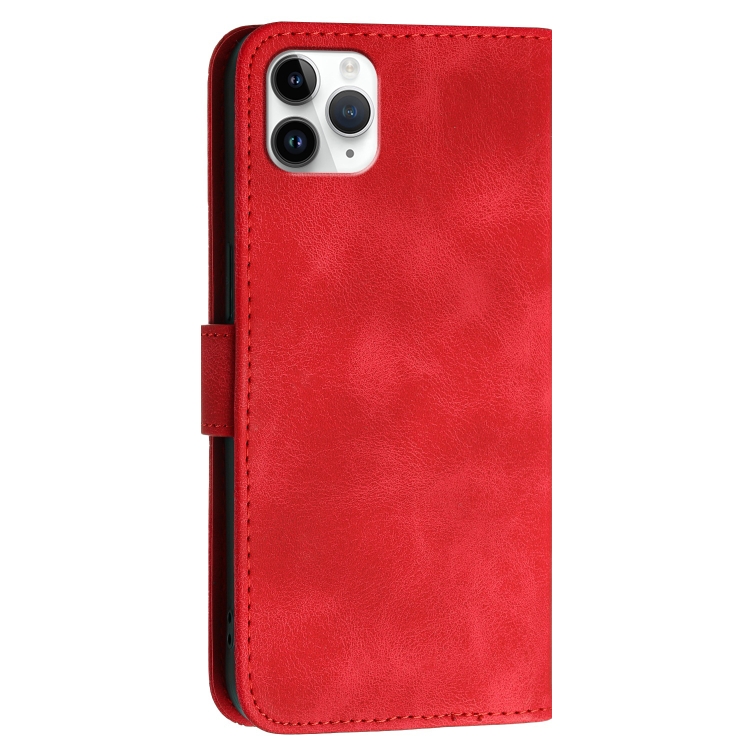 Funda de Cuero para iPhone 11 Pro Max Yx0080 con Tapa Patrón Mariposa y Cuadrícula con Cordón (Rojo)