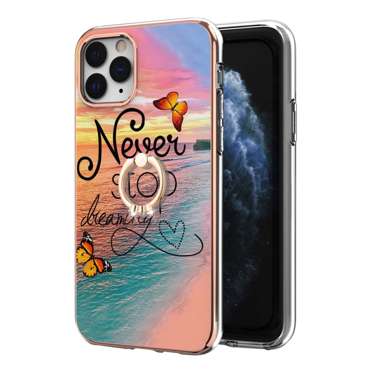 Estuche TPU para iPhone 11 Pro Patrón Galvanoplastia Imd a Prueba de Golpes con Soporte para Anillo (Dream Chasing Butterfly)