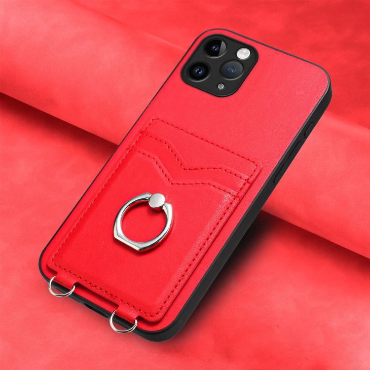 Estuche para Teléfono iPhone 11 Pro R20 con Soporte para Tarjeta con Anillo (Rojo)