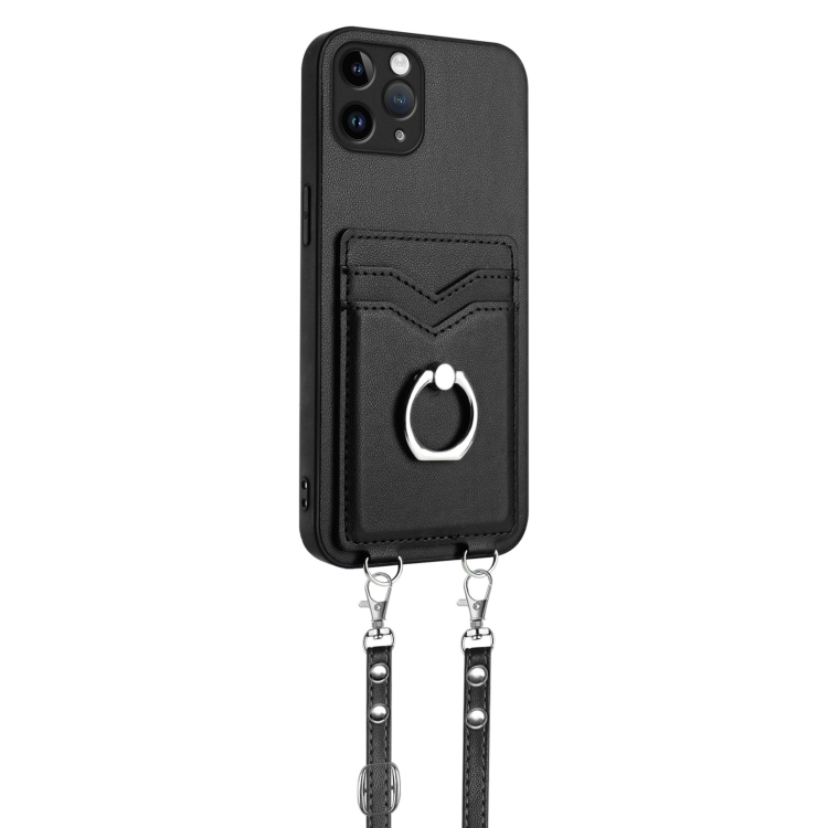 Funda para Teléfono iPhone 11 Pro R20 Soporte Tarjeta Anillo Cuerda Cruzada (Negro)