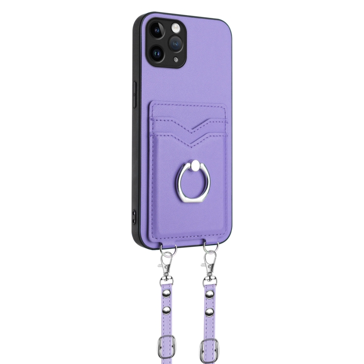 Funda para Teléfono iPhone 11 Pro R20 Soporte Tarjeta Anillo Cuerda Cruzada (Púrpura)