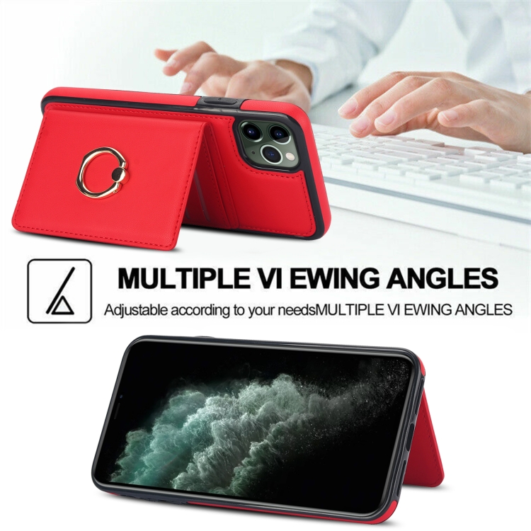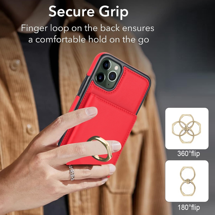 Funda para Teléfono iPhone 11 Pro Rfid con Soporte para Anillo y Tarjeta Antirrobo (Rojo)