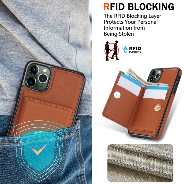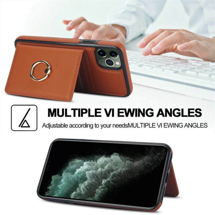 Estuche para teléfono iPhone 11 Pro Rfid Tarjeta Antirrobo con Soporte para Anillo (Marrón)