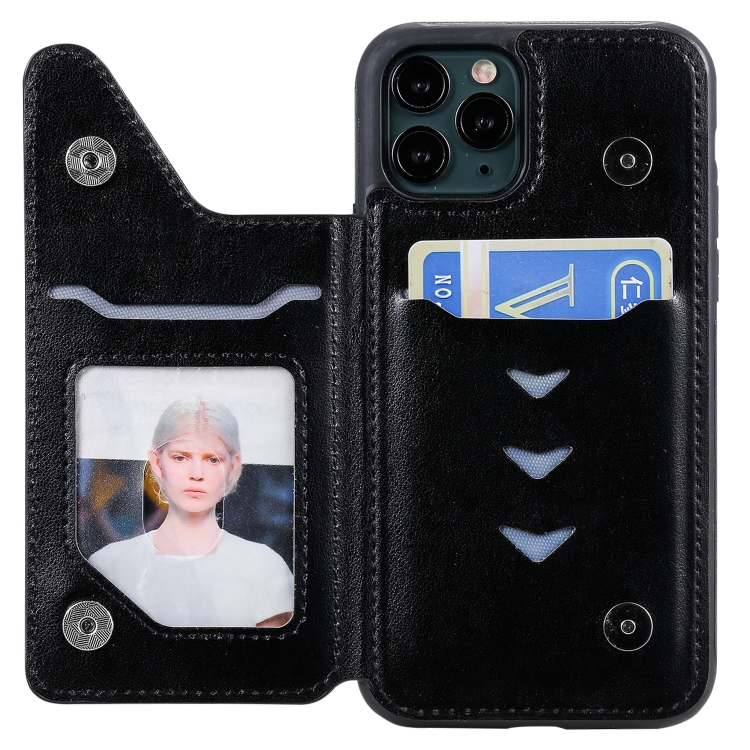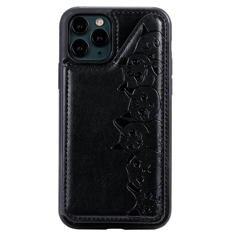 Estuche Protector iPhone 11 Pro Six Cats con Patrón En Relieve Soporte Ranuras y Marco de Fotos (Negro)