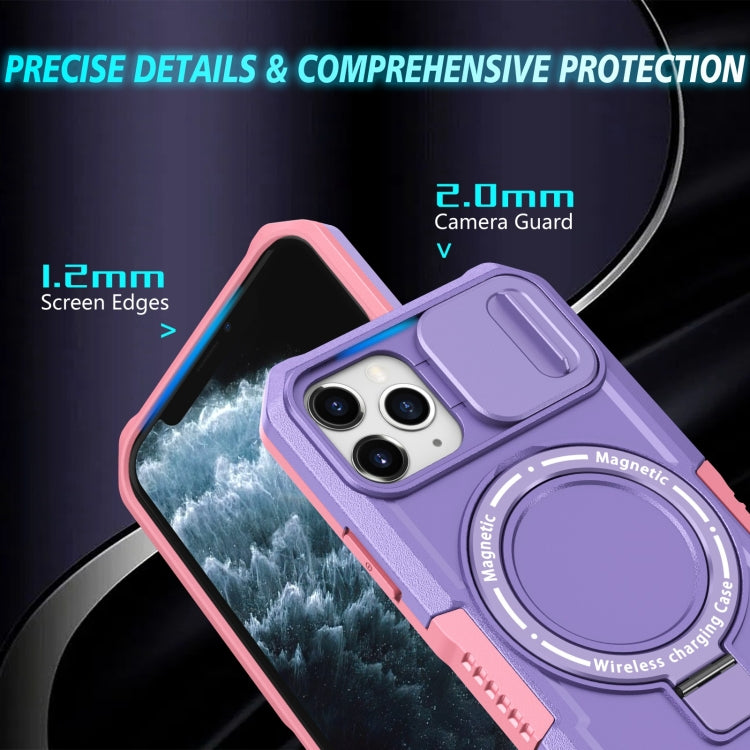 Funda para teléfono iPhone 11 Pro Sliding Camshield Magsafe Holder TPU Hybrid PC (Rosa Púrpura)