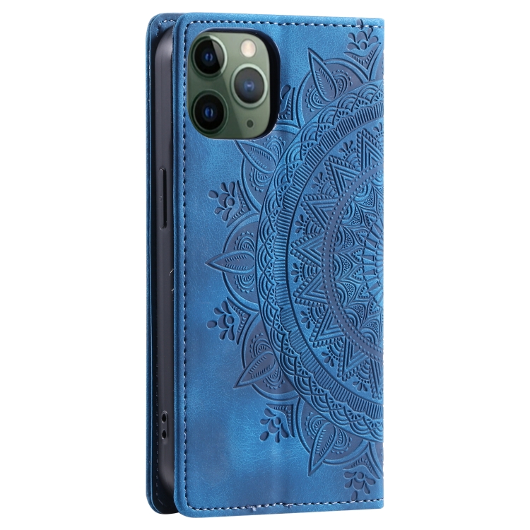 Funda de Teléfono Totem para iPhone 11 Pro Cuero Magnético En Relieve (Azul)
