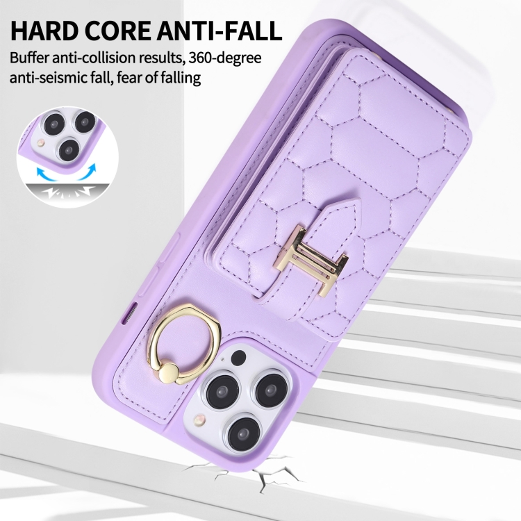 Funda para iPhone 11 Pro Vertical Card Bag Ring Holder con Doble Cordón (Púrpura)