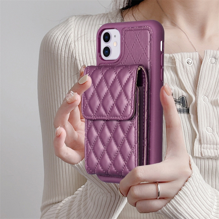 Funda de Cuero Vertical Wallet Rhombic para iPhone 11 (Púrpura Oscuro)