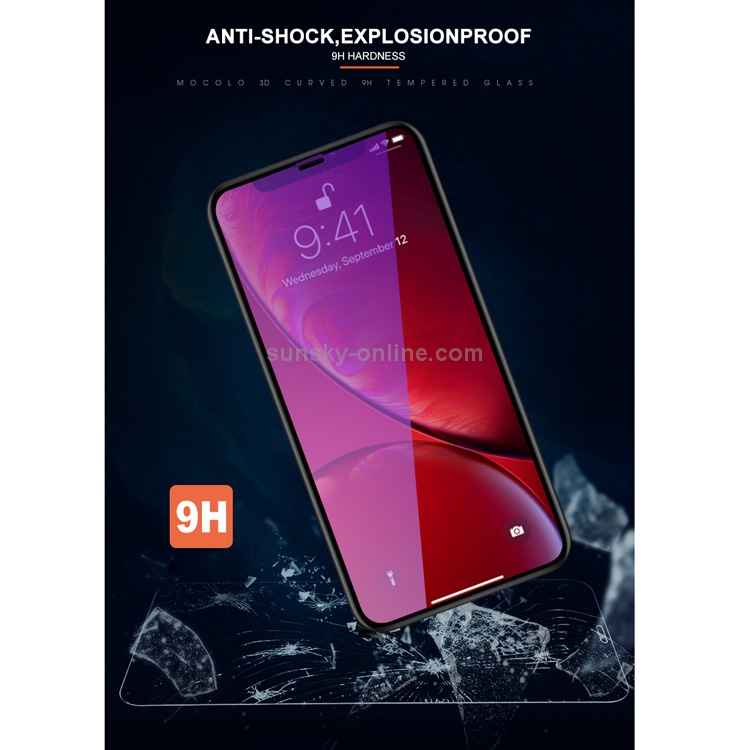 Protector de Pantalla Mocolo para iPhone 11 / Xr 0.33mm 9H 3D Round Edge Anti Blue-Ray (Negro)