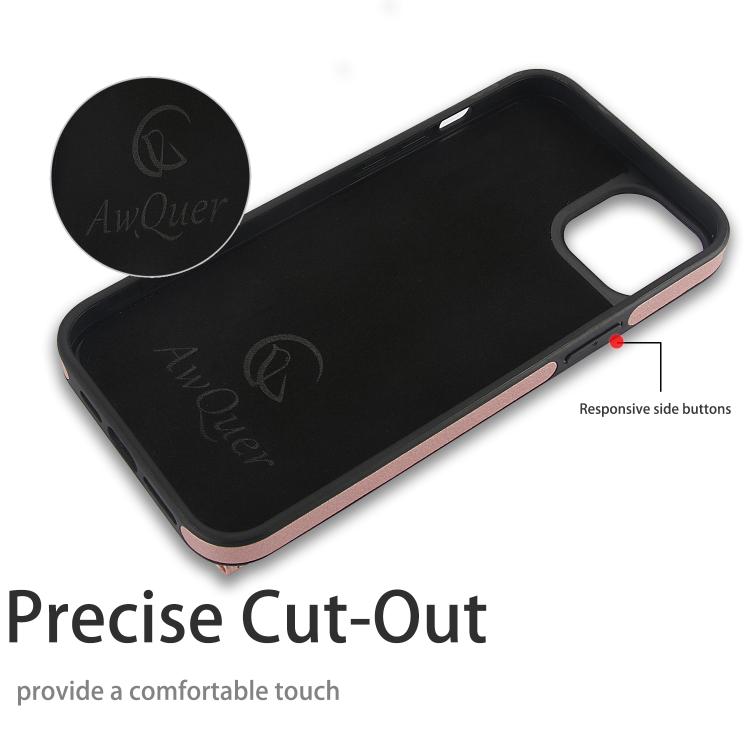Funda para iPhone 12/12 Pro Awquer Cuero con Tapa Horizontal para Tarjetas y Soporte (Oro Rosa)