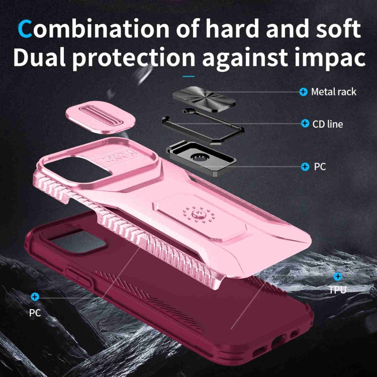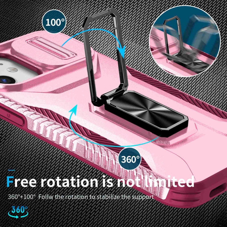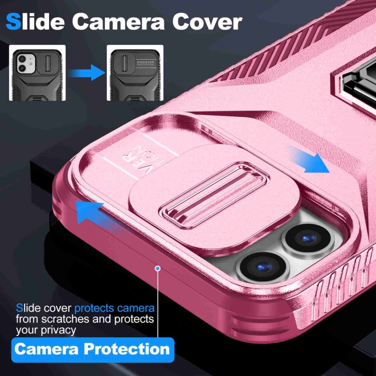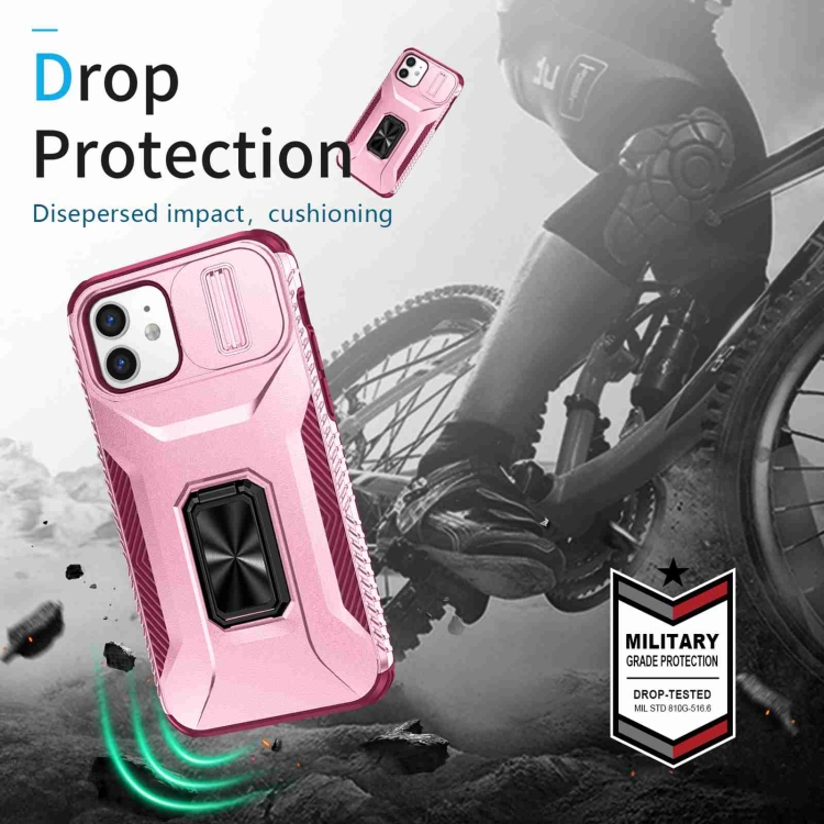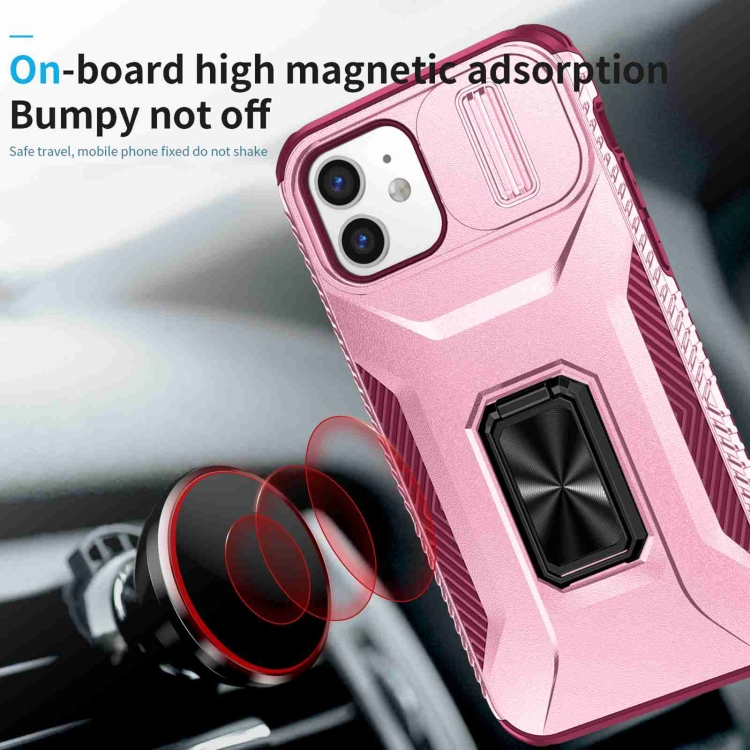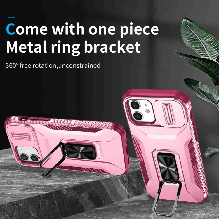 Estuche para Teléfono iPhone 12/12 Pro con Soporte Deslizante para Levas (Rosa + Rojo Rosa)