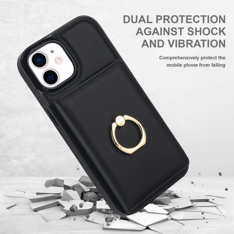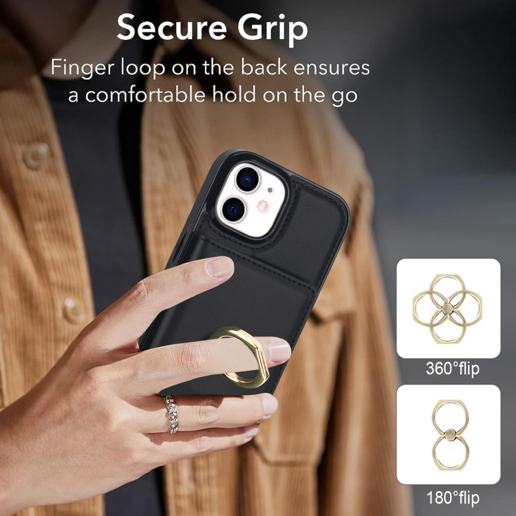 Estuche para teléfono iPhone 12/12 Pro con soporte para anillo y tarjetero antirrobo Rfid (Negro)