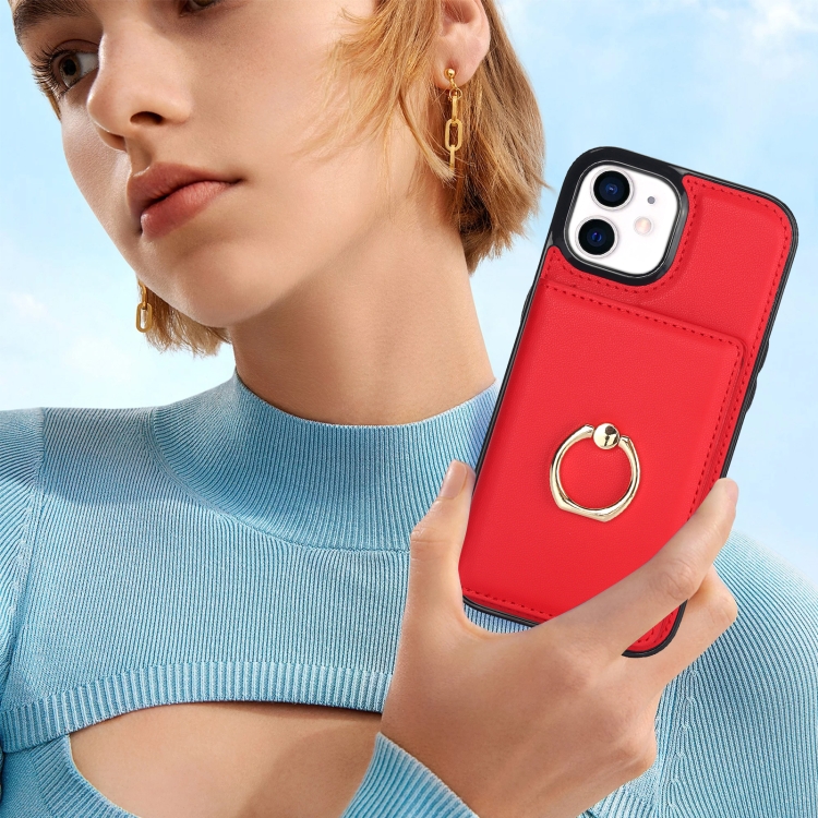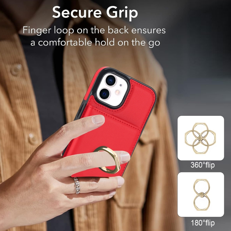 Estuche para Teléfono iPhone 12/12 Pro con Soporte Anillo y Tarjeta Antirrobo Rfid (Rojo)