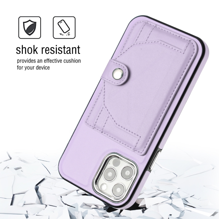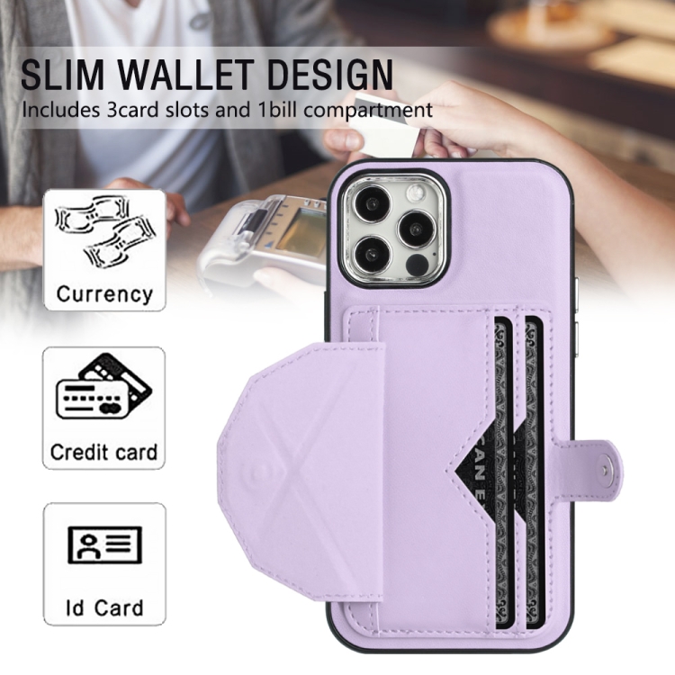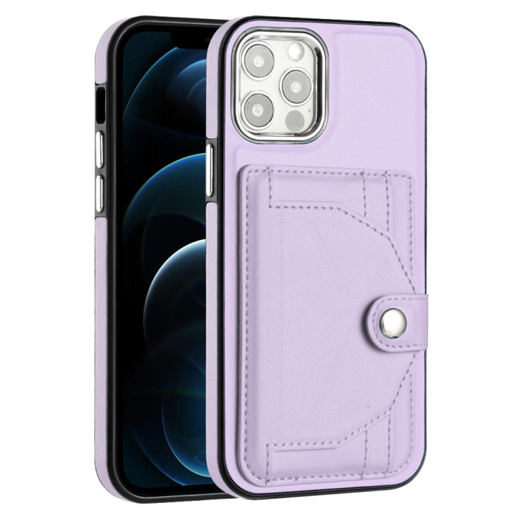 Funda para iPhone 12/12 Pro Cuero Prueba de Golpes con Tarjetero (Púrpura)