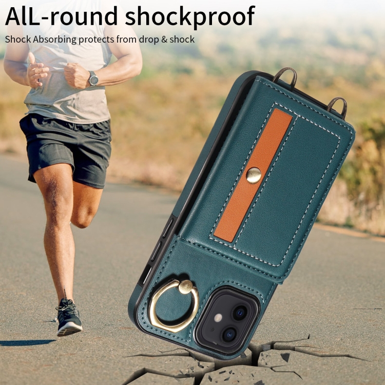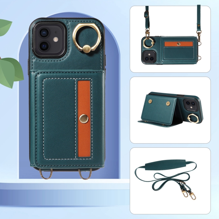 Funda para Teléfono iPhone 12/12 Pro Cuero con Soporte para Anillo y Bolso Cruzado para Tarjetas (Verde)