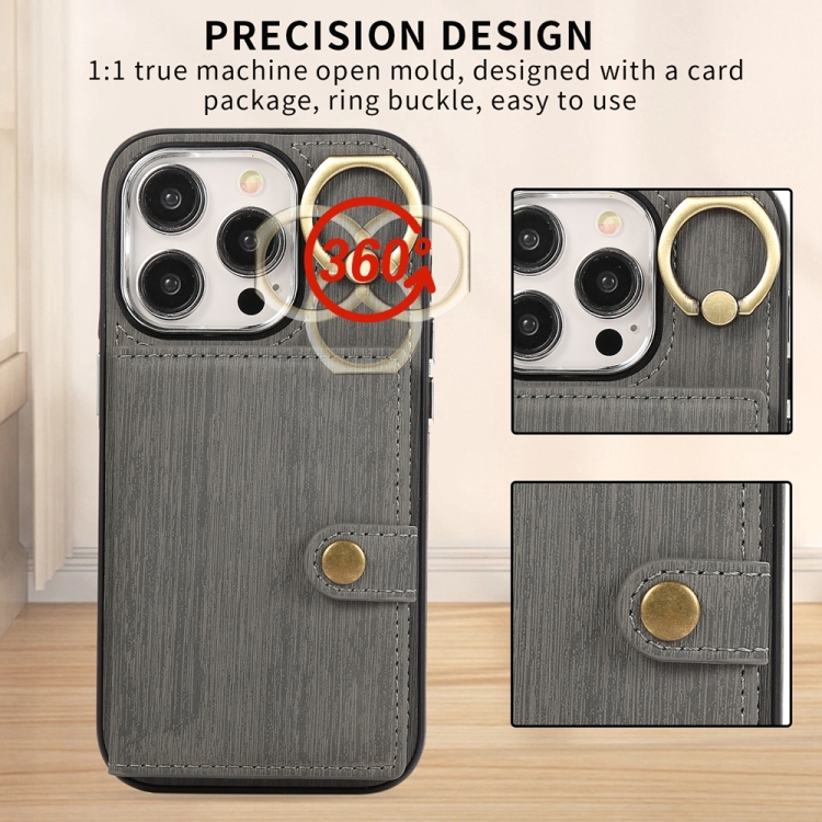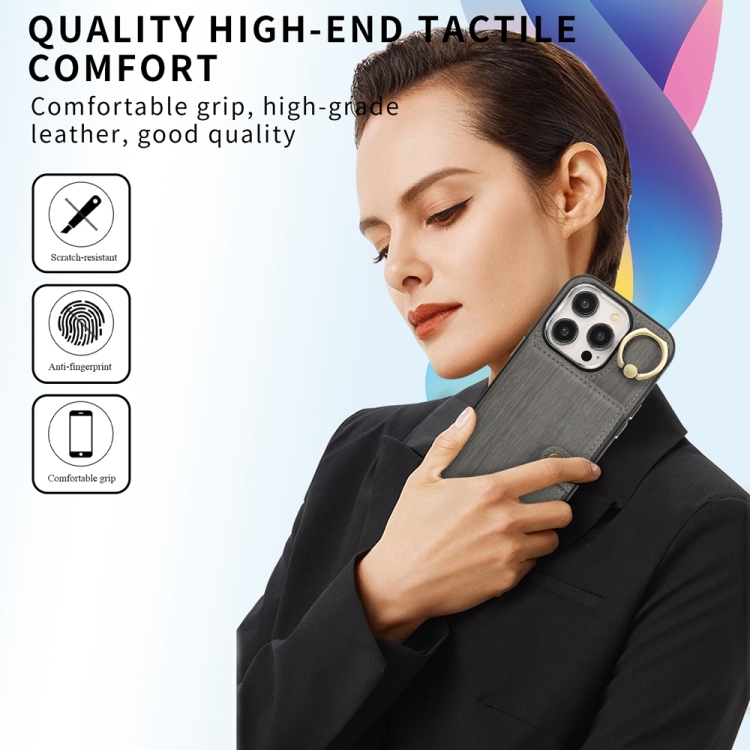 Funda para Teléfono iPhone 12/12 Pro con Soporte para Anillo y Billetera con Textura Cepillada (Gris)