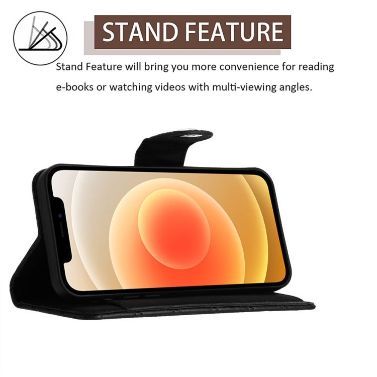 Funda para Teléfono iPhone 12/12 Pro con Tapa de Cuero Textura Rómbica y Cordón (Negro)