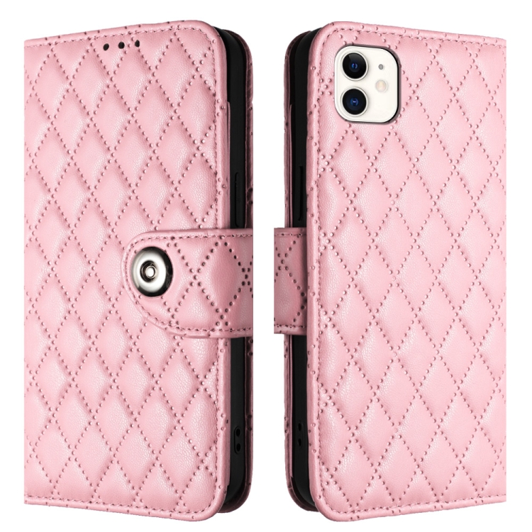 Funda para Teléfono iPhone 12/12 Pro con Tapa de Cuero Textura Rómbica y Cordón (Rosa)