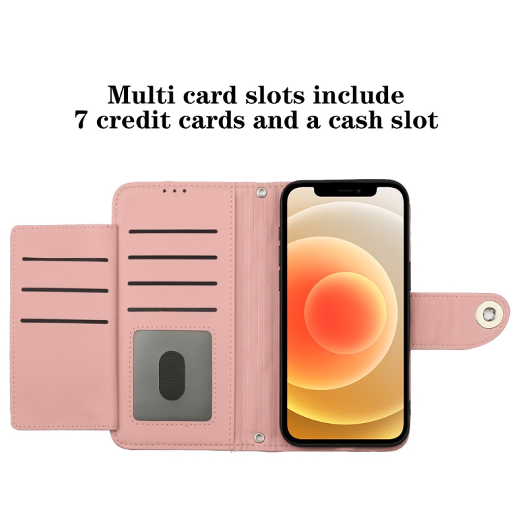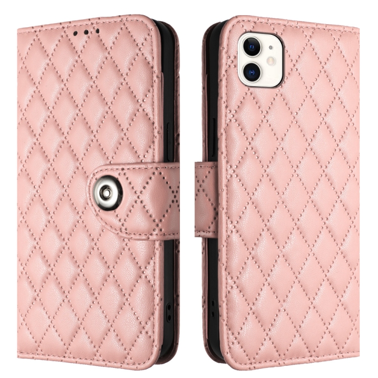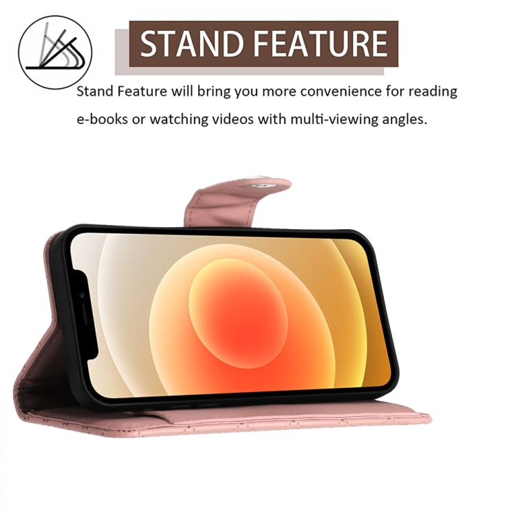 Funda para Teléfono iPhone 12/12 Pro con Tapa de Cuero Textura Rómbica y Cordón (Rosa Coral)