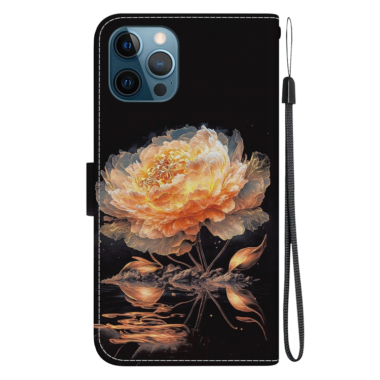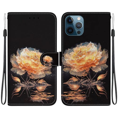 Funda para Teléfono iPhone 12/12 Pro Cuero con Dibujo Coloreado Textura de Cristal (Peonía Dorada)