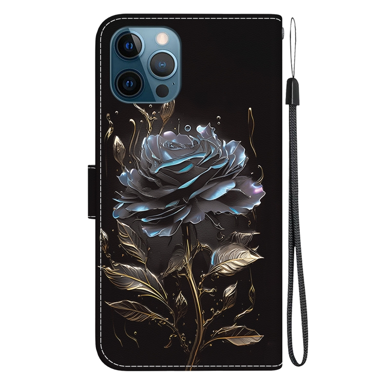 Funda para Teléfono iPhone 12/12 Pro Cuero Dibujo Coloreado Textura de Cristal (Rosa Negra)