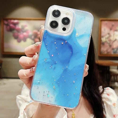 Funda para Teléfono TPU Apple iPhone 12/12 Pro Purpurina Manchada de Tinta (Azul)