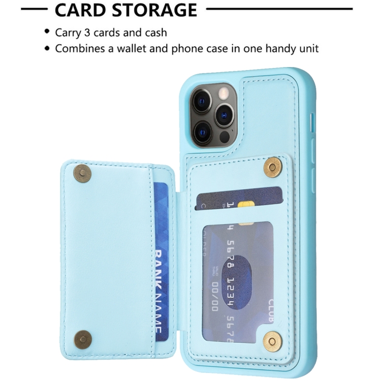 Funda para iPhone 12/12 Pro Grid Card Slot Holder Phone Case (Azul)