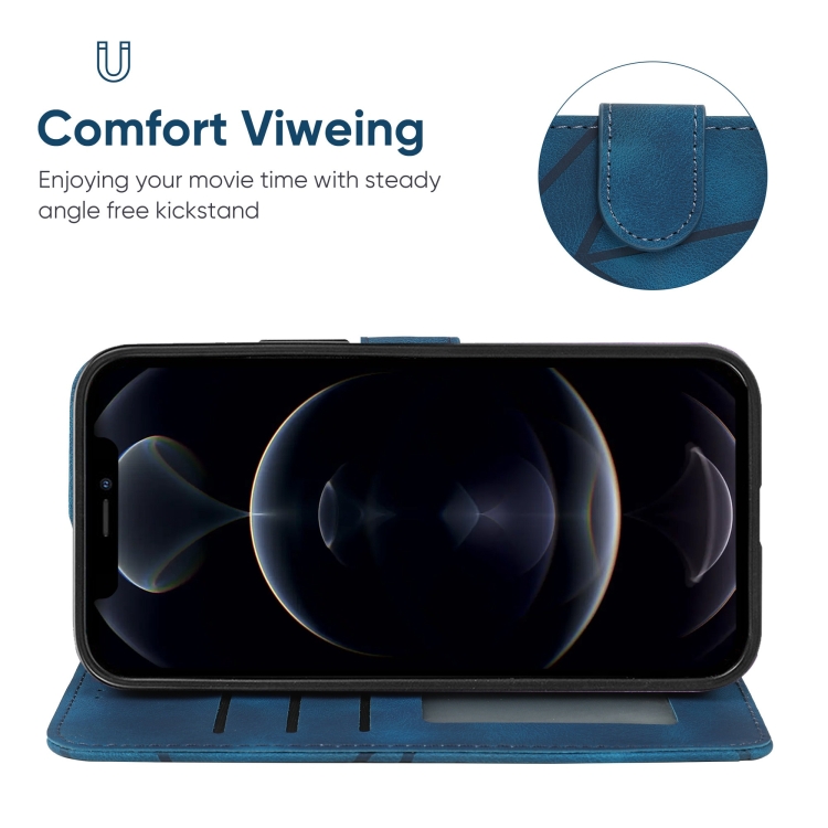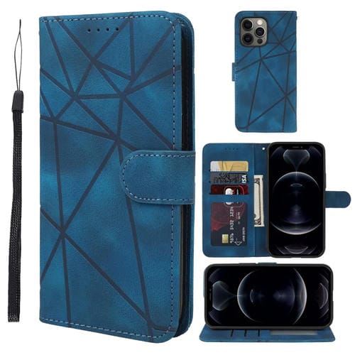 Funda para iPhone 12/12 Pro Skin Feel Cuero Líneas Geométricas (Azul)