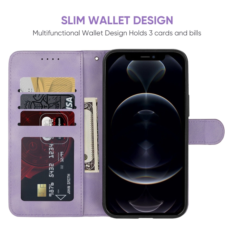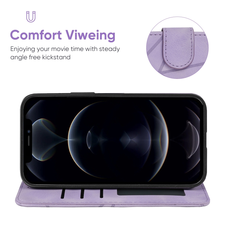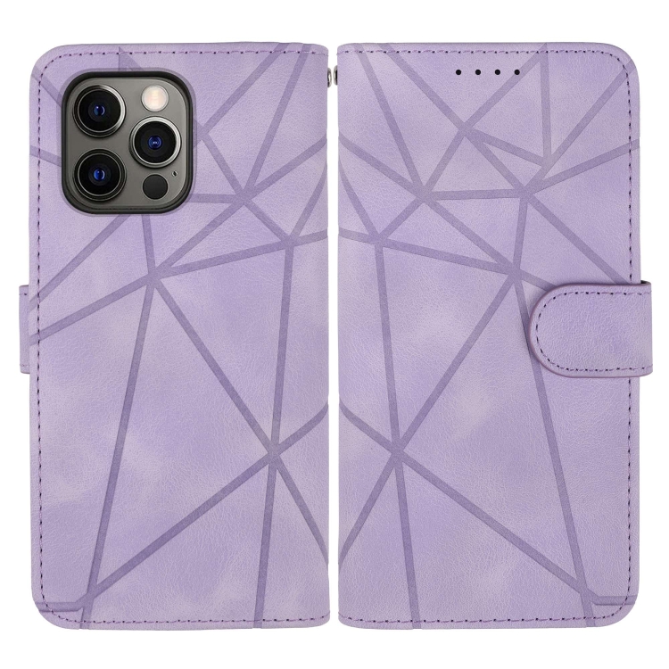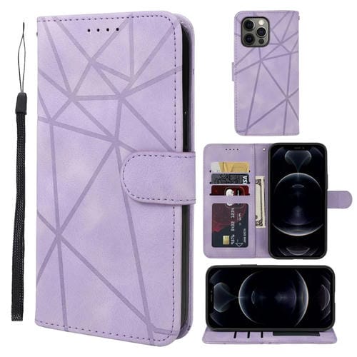 Funda de Cuero para iPhone 12/12 Pro Skin Feel con Líneas Geométricas (Púrpura)