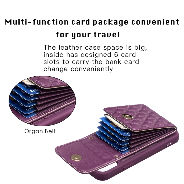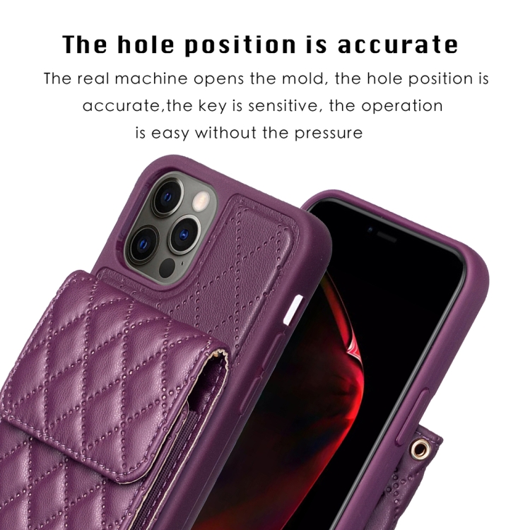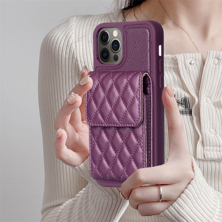 Funda de Cuero Vertical Wallet para iPhone 12/12 Pro Rhombic (Morado Oscuro)