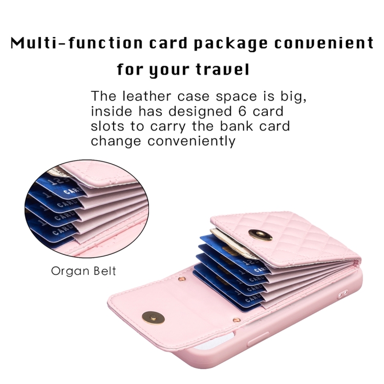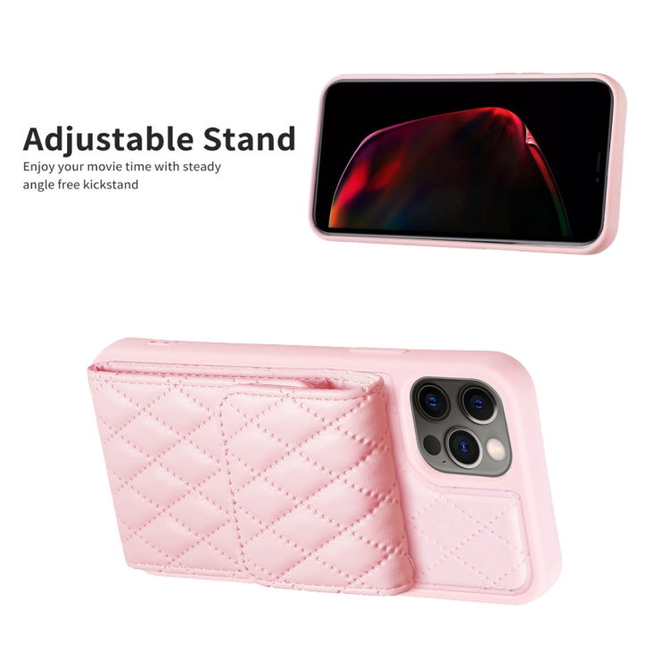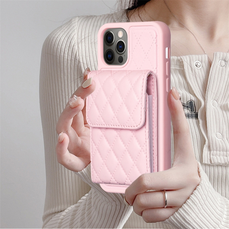 Funda Vertical Wallet para iPhone 12/12 Pro Rhombic Leather (Rosa)