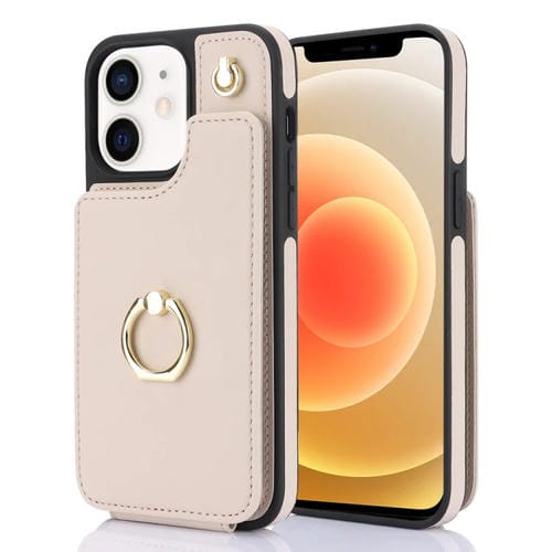 Estuche para teléfono Ym005 para iPhone 12 y 12 Pro con bolsa para tarjetas y cordón largo (Albaricoque)