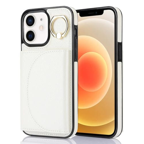 Estuche para teléfono Ym006 para iPhone 12/12 Pro con soporte para anillo y tarjeta (Blanco)
