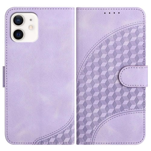 Funda de Cuero Yx0060 para iPhone 12/12 Pro con Relieve de Cabeza de Elefante y Cordón (Púrpura Claro)