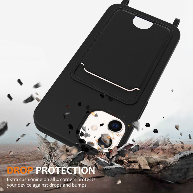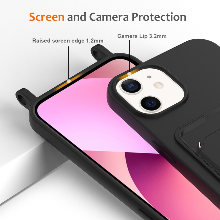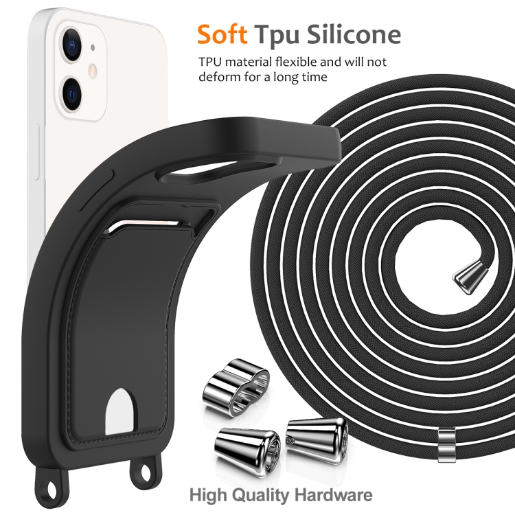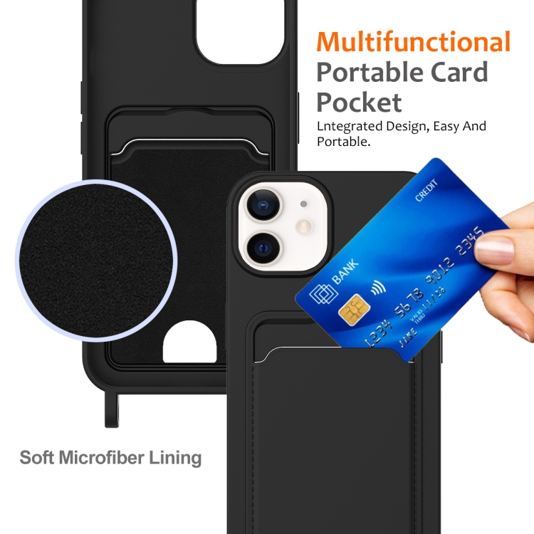 Funda para Teléfono iPhone 12 Bolsa para Tarjeta Integrada Silicona Líquida con Cordón (Negro)