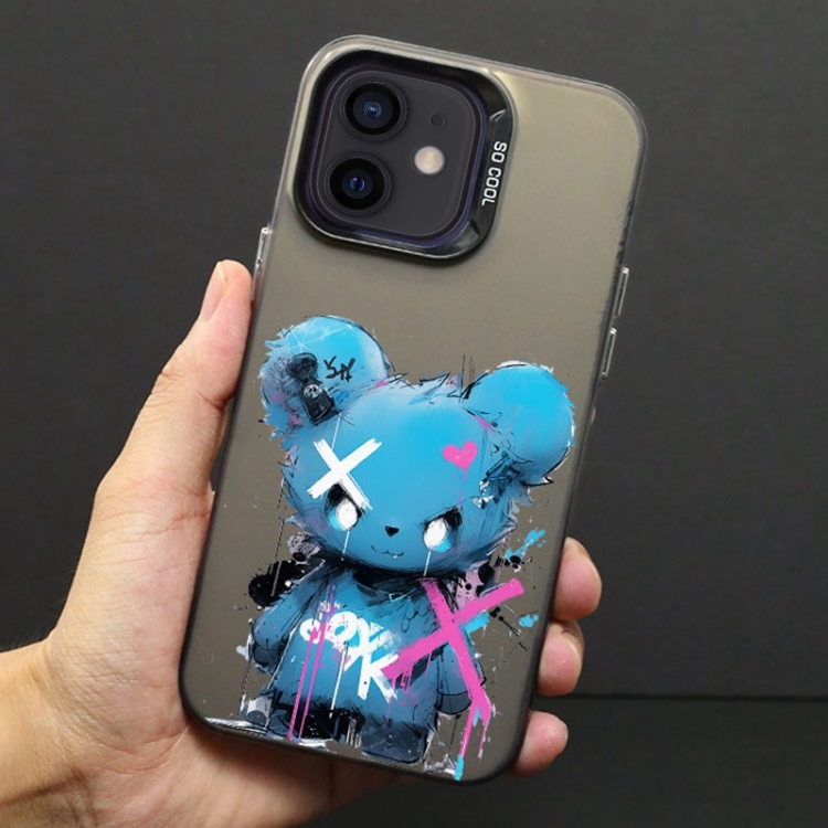 Funda para iPhone 12 Color Ink Frosted PC + Estuche TPU Oso Azul