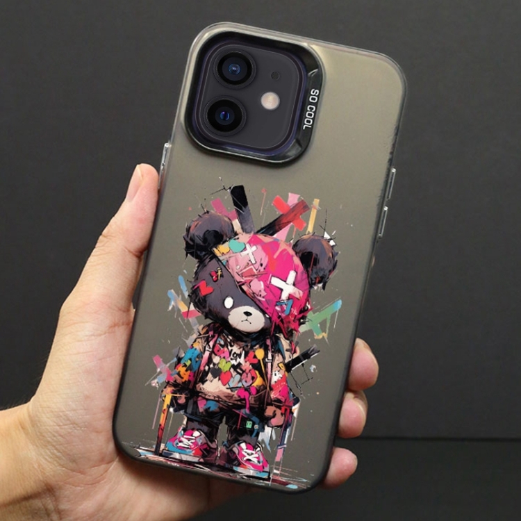 Funda para iPhone 12 Color Ink Frosted PC + Estuche TPU Oso Negro