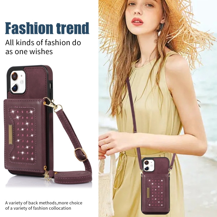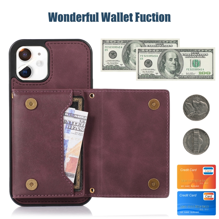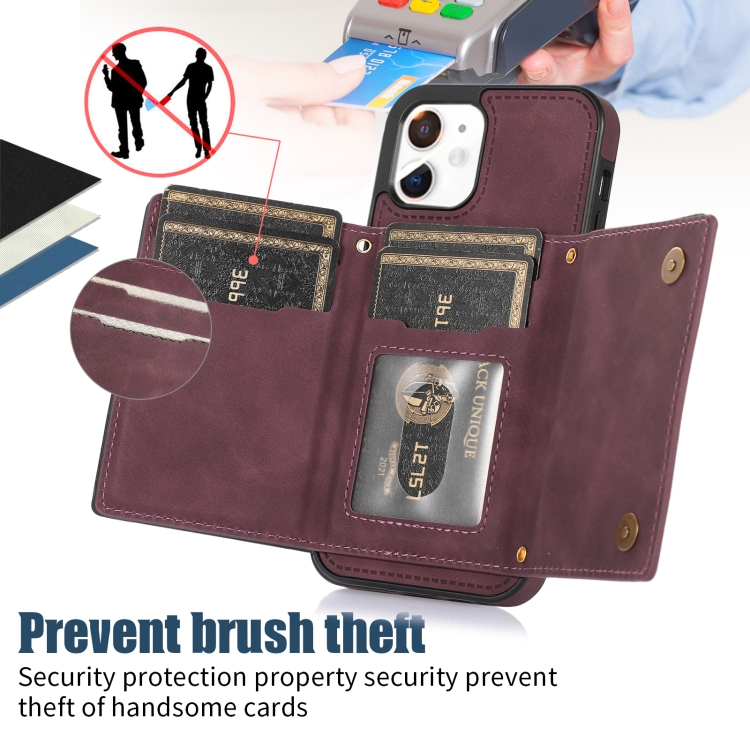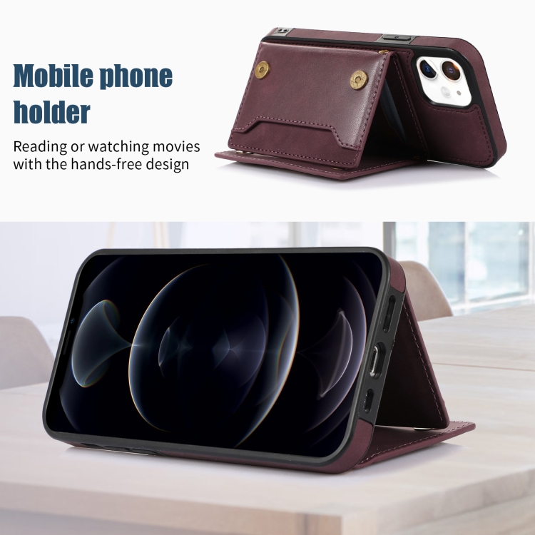Estuche de Teléfono iPhone 12 Cuero Rfid Tres Pliegues con Cordón (Rojo)