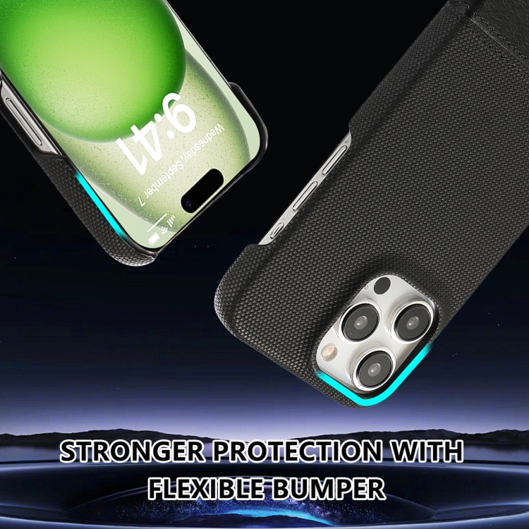 Funda de Teléfono para iPhone 12 a Prueba de Golpes de PU Tela de Costura (Negro)