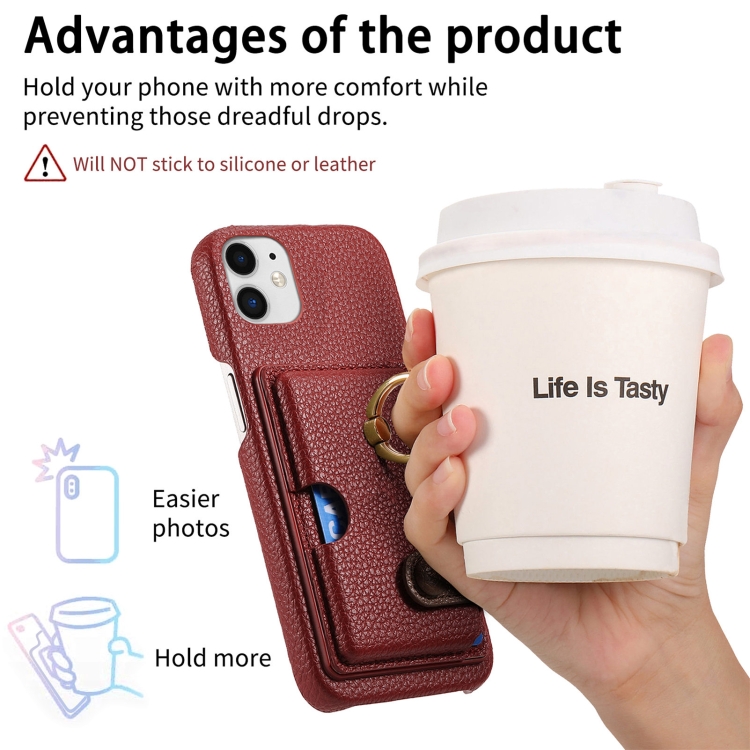 Funda para Teléfono iPhone 12 Borde de Aceite Cuero Litchi Anillo Trasero Tarjeta (Rojo)