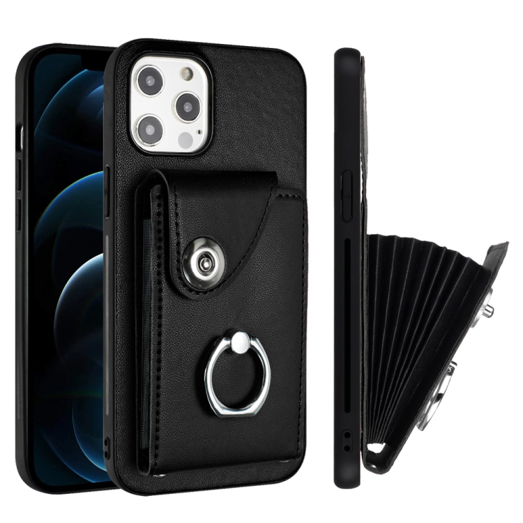 Funda para Teléfono iPhone 12 con Soporte para Anillo y Bolsa para Tarjeta (Negro)