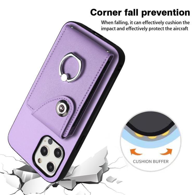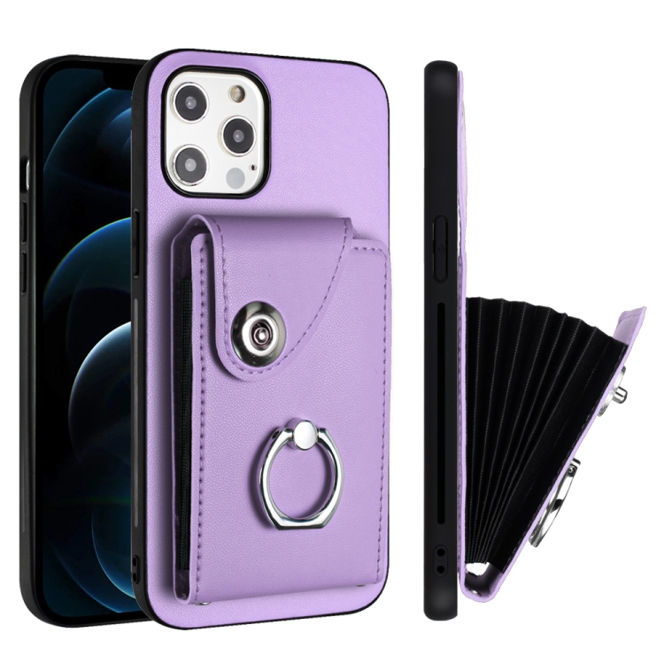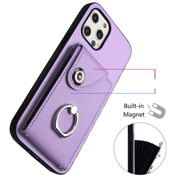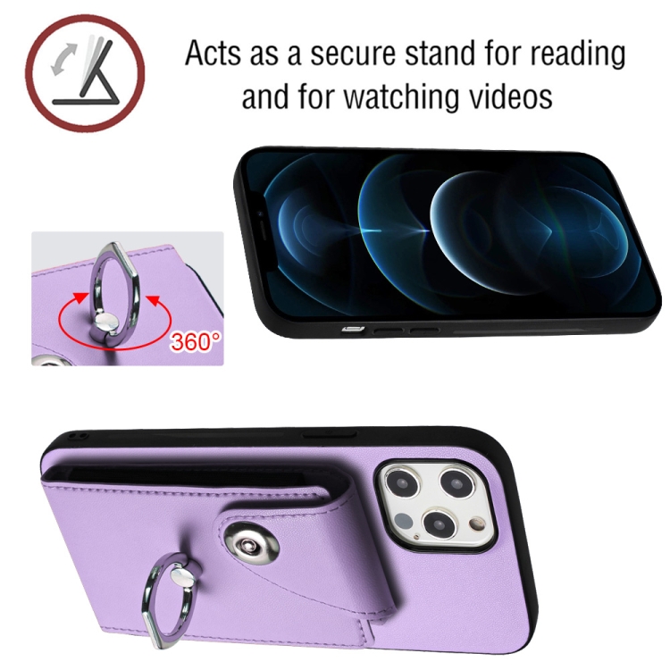 Funda para Teléfono iPhone 12 con Soporte para Anillo y Bolsa para Tarjeta de Órgano (Púrpura)