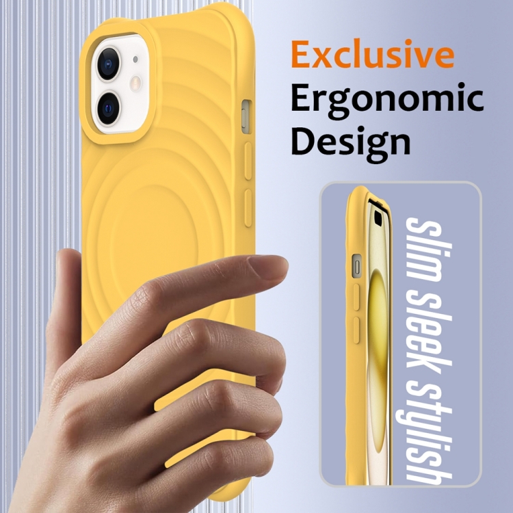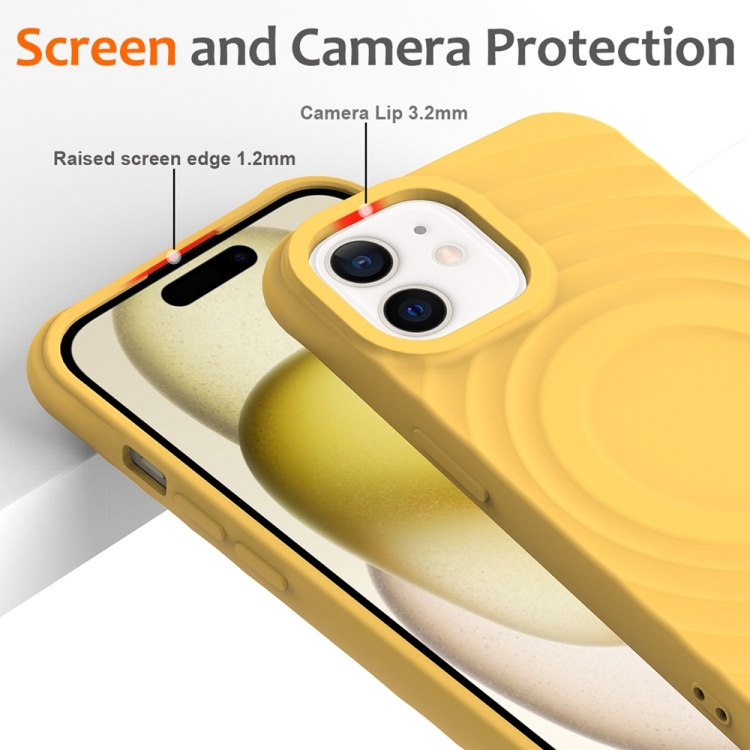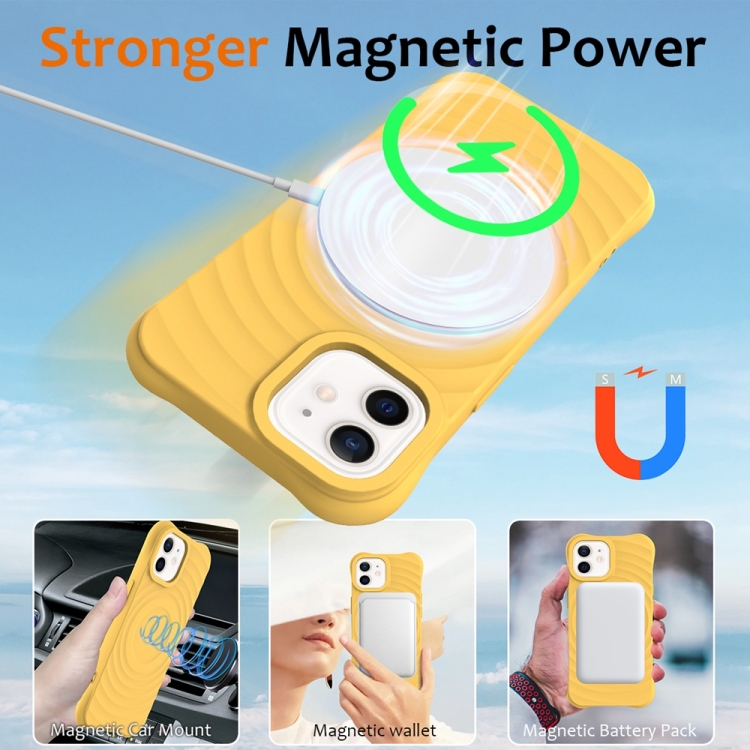 Funda para Teléfono iPhone 12 Silicona Líquida Magnética Magsafe Textura Ondulada (Amarillo)