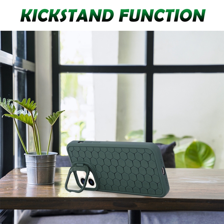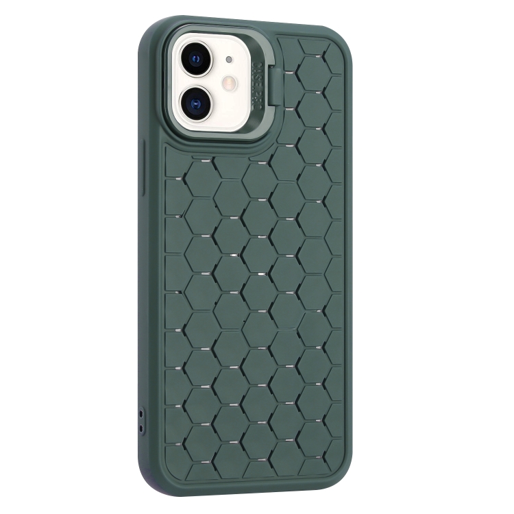 Funda para Teléfono TPU para iPhone 12 con Soporte para Lente Radiante de Panal (Verde)