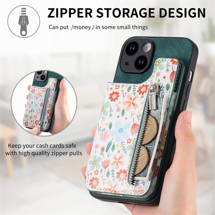 Funda Trasera para iPhone 12 con Billetera con Cremallera Pintada Retro (Verde)